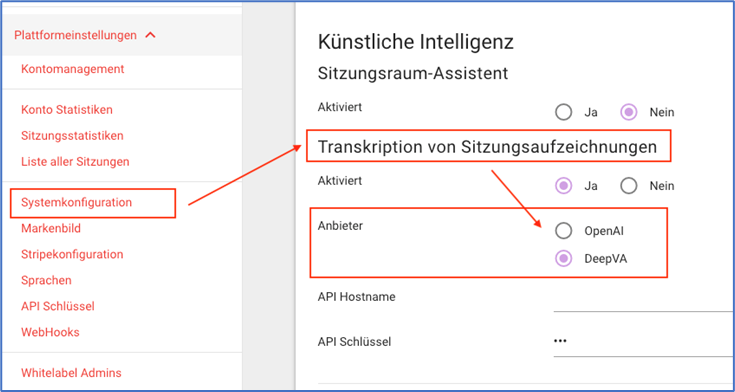 White Label und Webmeeting Corporate Kunden können neu Aufzeichnungen automatisch transkribieren lassen. Zur Auswahl stehen Adaptoren zu DeepVA und OpenAI. Damit lassen sich Sitzungsinhalte einfacher durchsuchen und dokumentieren. Ein Protokollführer kann so beispielsweise rasch die wichtigsten Diskussionspunkte eines längeren Meetings zusammenstellen. In der Standard Webmeeting Rooms Version steht diese Funktion nicht zur Verfügung.