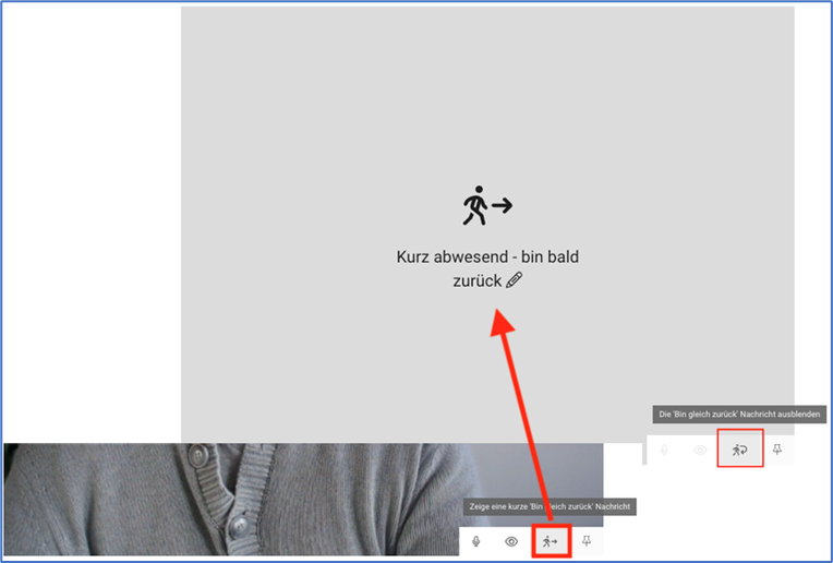 Teilnehmende können neu einen «Bin gleich zurück»-Status setzen. Dieser funktioniert analog zur Audio- und Video-Stummschaltung, erlaubt aber zusätzlich eine kurze eigene Nachricht. Wer sich kurz vom Arbeitsplatz entfernt, kann so signalisieren, dass er oder sie gleich wieder anwesend ist, ohne das Meeting verlassen zu müssen.