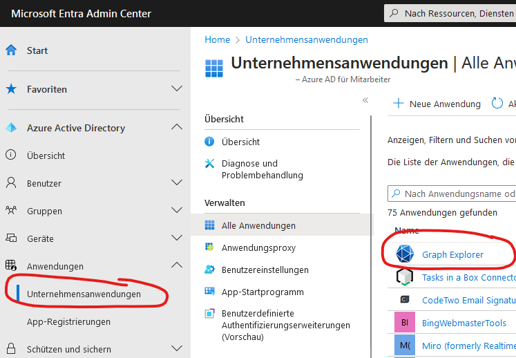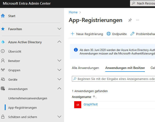 Für den Zugriff auf Microsoft-Online-Resourcen mittels Microsoft-Graph-API muss die Anwendung im „Microsoft Entra Admin Center“ registriert sein.